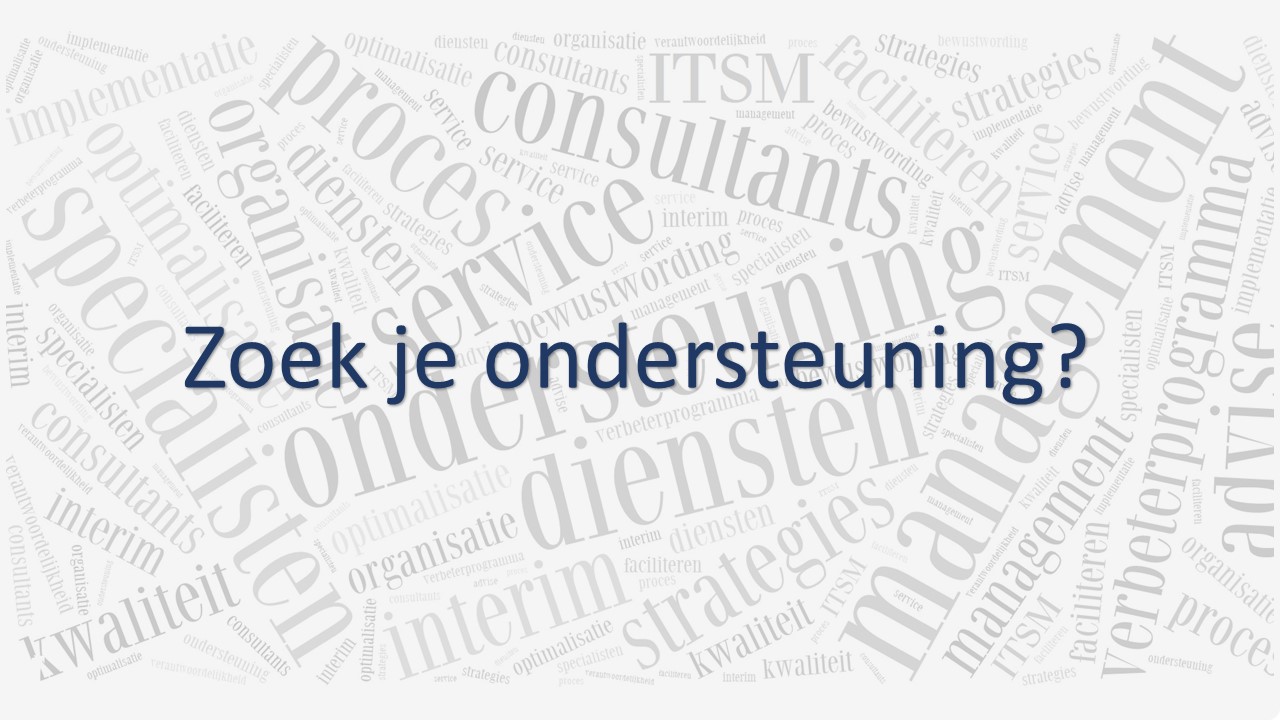 Onze diensten rond de ondersteuning van IT Service Management (ITSM) zijn er op gericht dat u zich van uw concurrentie kunt onderscheiden met professionele, kosteneffectieve en kwalitatief hoogwaardige diensten.